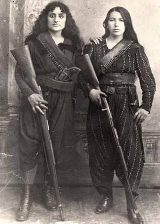 7. आर्मीनियाई नरसंहार में लड़ाई के लिये तैयार खड़ी Armenian महिलाएं. फ़ोटो 1915 की है.