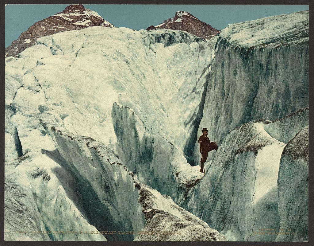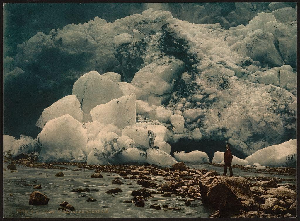 15. नॉर्वे के नोर्डफजॉर्ड में बर्फ़ के बीच एक शख़्स – 1890