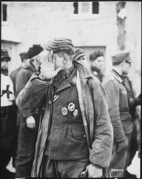 19. बेल्जियम में अमेरिकी सेना द्वारा पकड़ा गया एक जर्मन कैदी (1945)