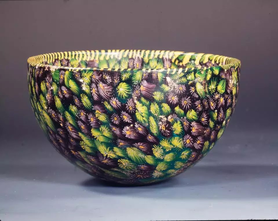 19. मिलिफायोरी तकनीक से बना रोम का एक पुराना कांच का कटोरा.