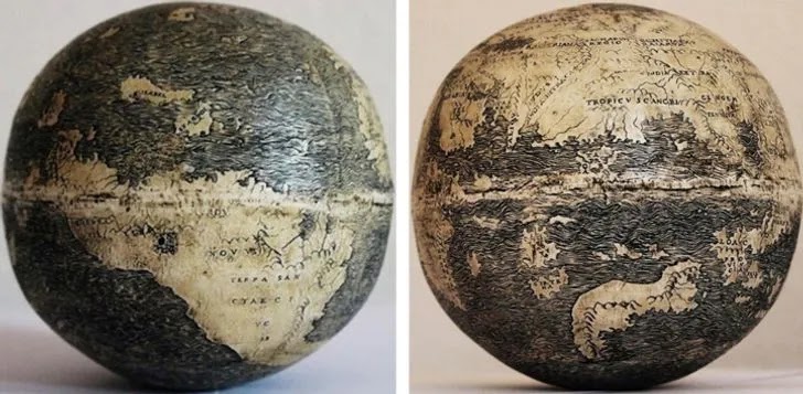 1. शुतुरमुर्ग के अंडे पर बना एक ग्लोब, जिसमें अमेरिका(1504) को दर्शाया गया है.