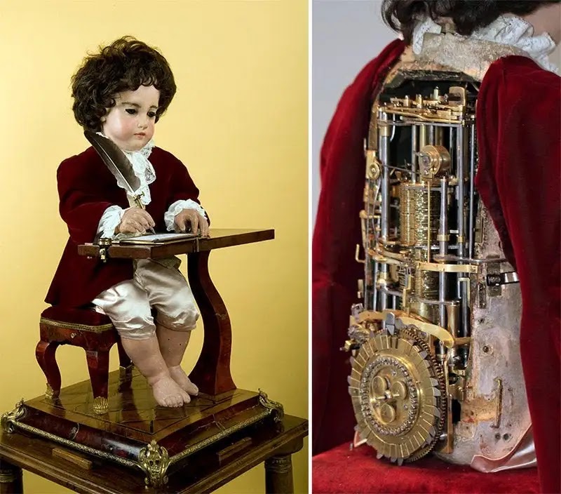 9. 1770 में घड़ी निर्माता Pierre Jaquet-Droz द्वारा बनाया गया एक रोबोट.