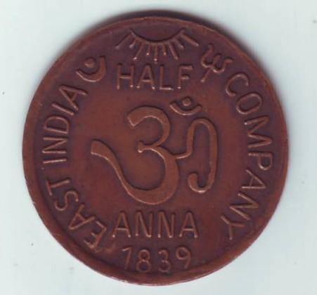 17. ईस्ट इंडिया कंपनी द्वारा ढाला गया आधे आने का सिक्का