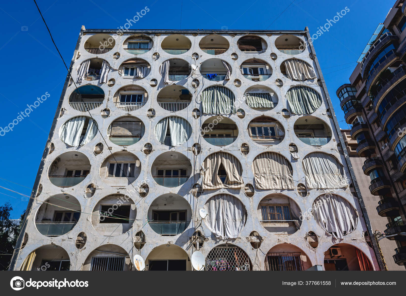 9. लेबनान में बनी गोल शेप वाली बालकनी की एक बिल्डिंग.