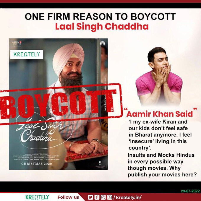 Now I am sure #BoycottLaalSinghChaddha#AamirKhan‘s picture Will be a flop 😹