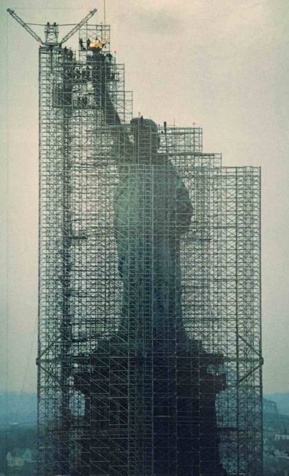 19. स्टैच्यू ऑफ़ लिबर्टी पर मरम्मत का काम चलते हुए, 1984-86
