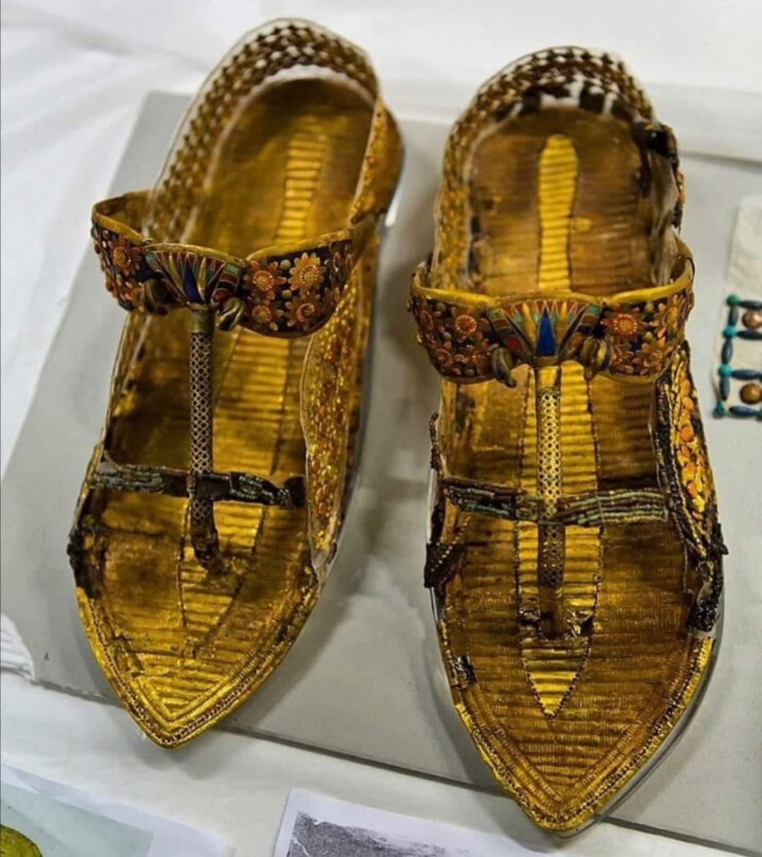 3. 18वें राजवंश के राजा तूतनख़ामुन की सुनहरी चप्पलें
