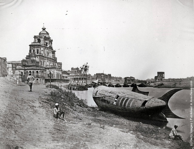 14. लखनऊ छत्तर मंज़िल पैलेस की दीवार, जिसे विद्रोहियों ने नष्ट कर दिया था. आगे की ओर मछली के आकार में शाही नाव है -1857